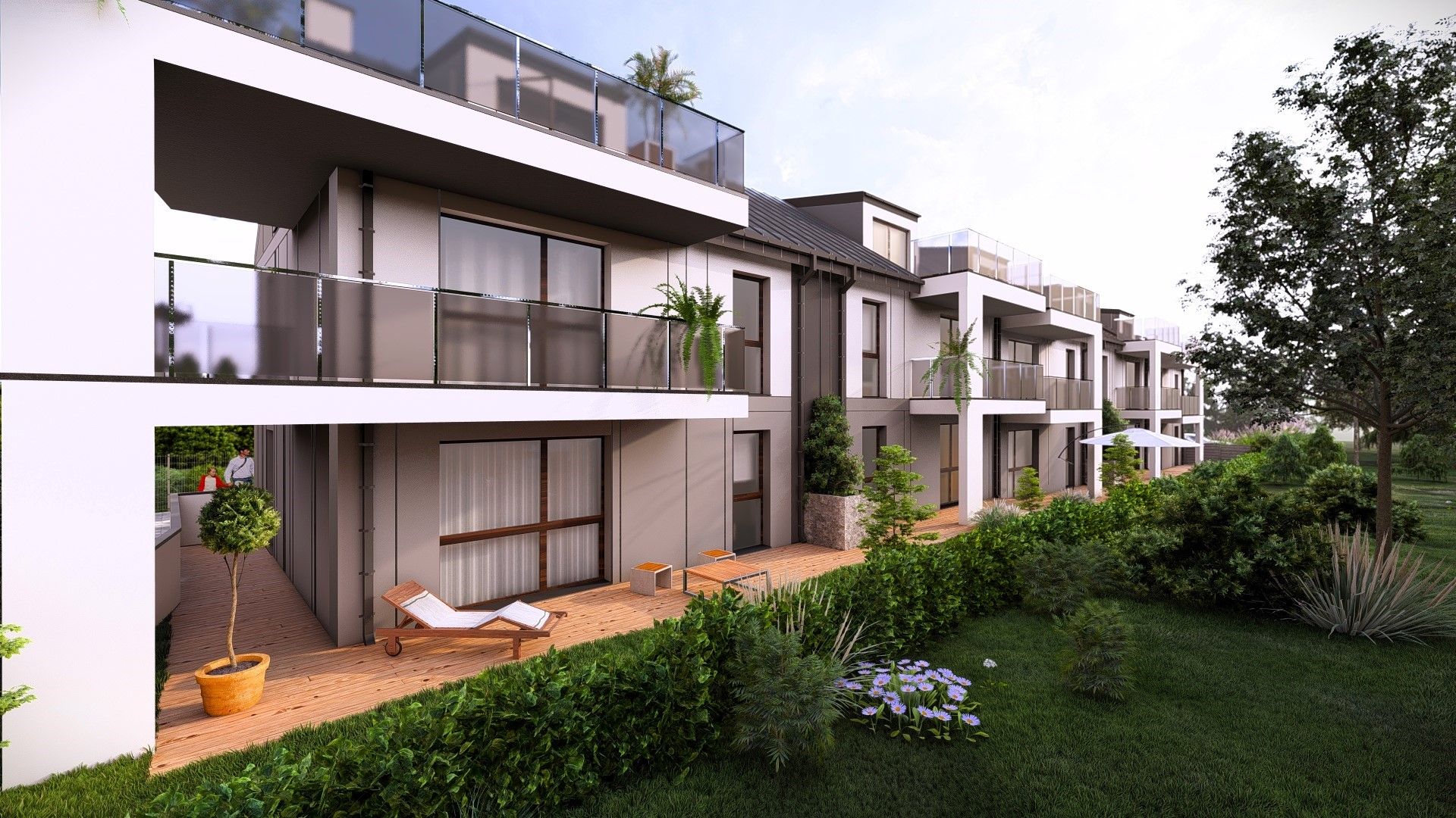 Z dbałością o najmniejsze detale, nasi architekci skupili się na stworzeniu najbardziej funkcjonalnej bryły szeregowej, zamykając się w nowoczesnej, ale i awangardowej stylistyce. W zabudowie znajduje się zaledwie 10 mieszkań-na parterze z tarasem i ogródkiem oraz mieszkania na piętrze z użytkowym poddaszem i z obszernymi tarasami.